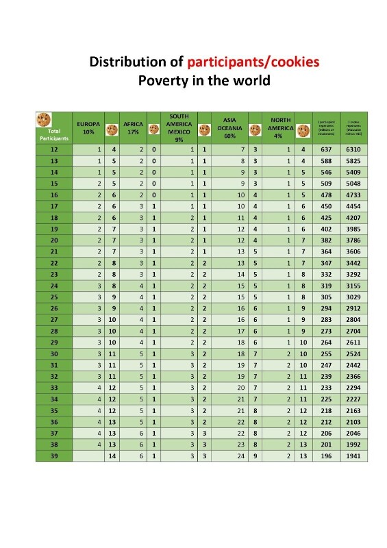 Tabla con la distribución entre participantes/galletas